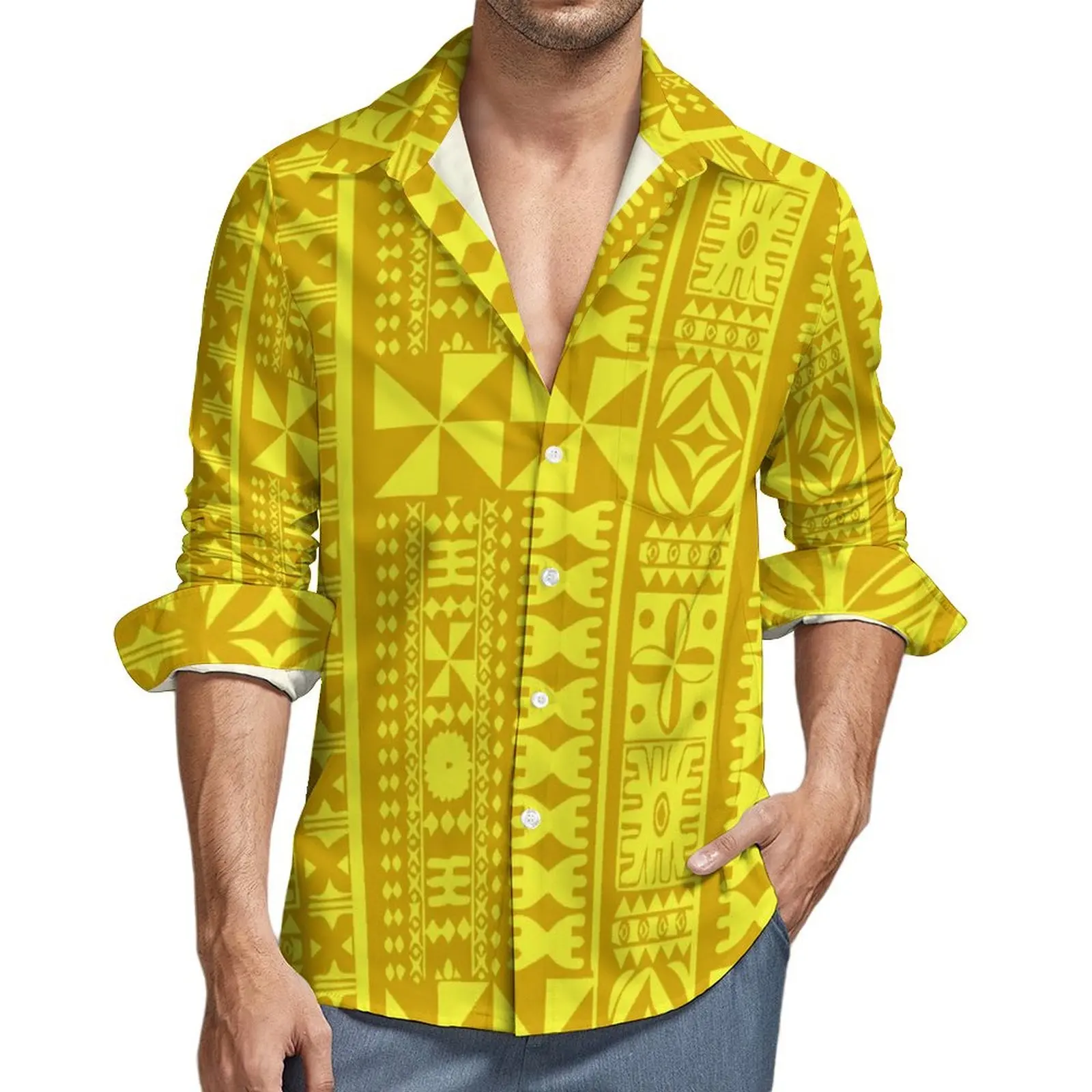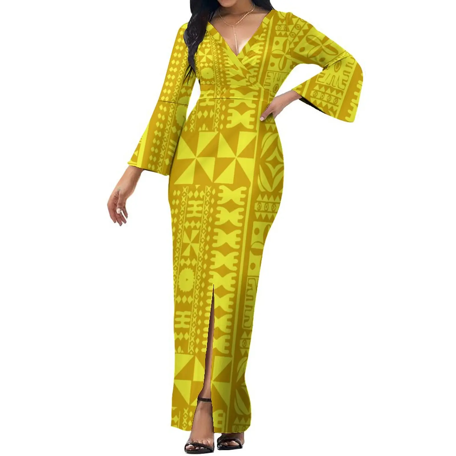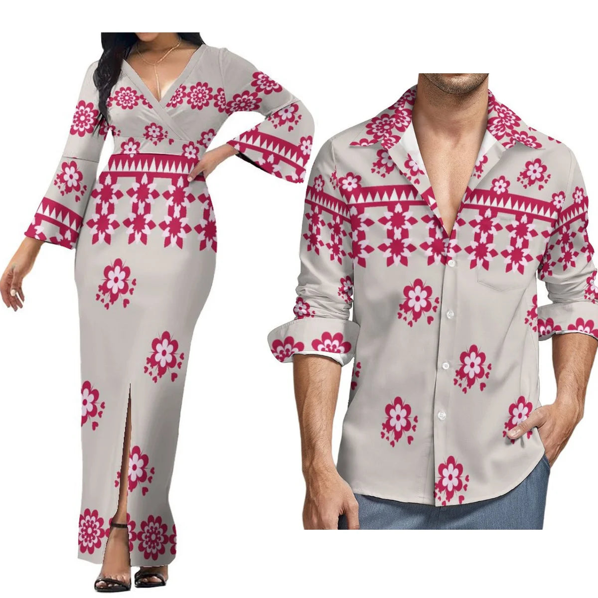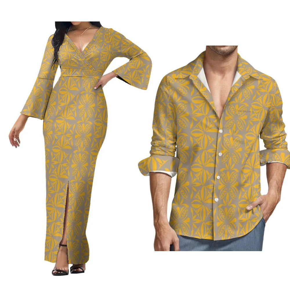 Custom Polynesian Island Style Samoa-Fiji Plus Size Couple Set Women'S Dress Beach Party Split Skirt And Men'S Aloha Shirt