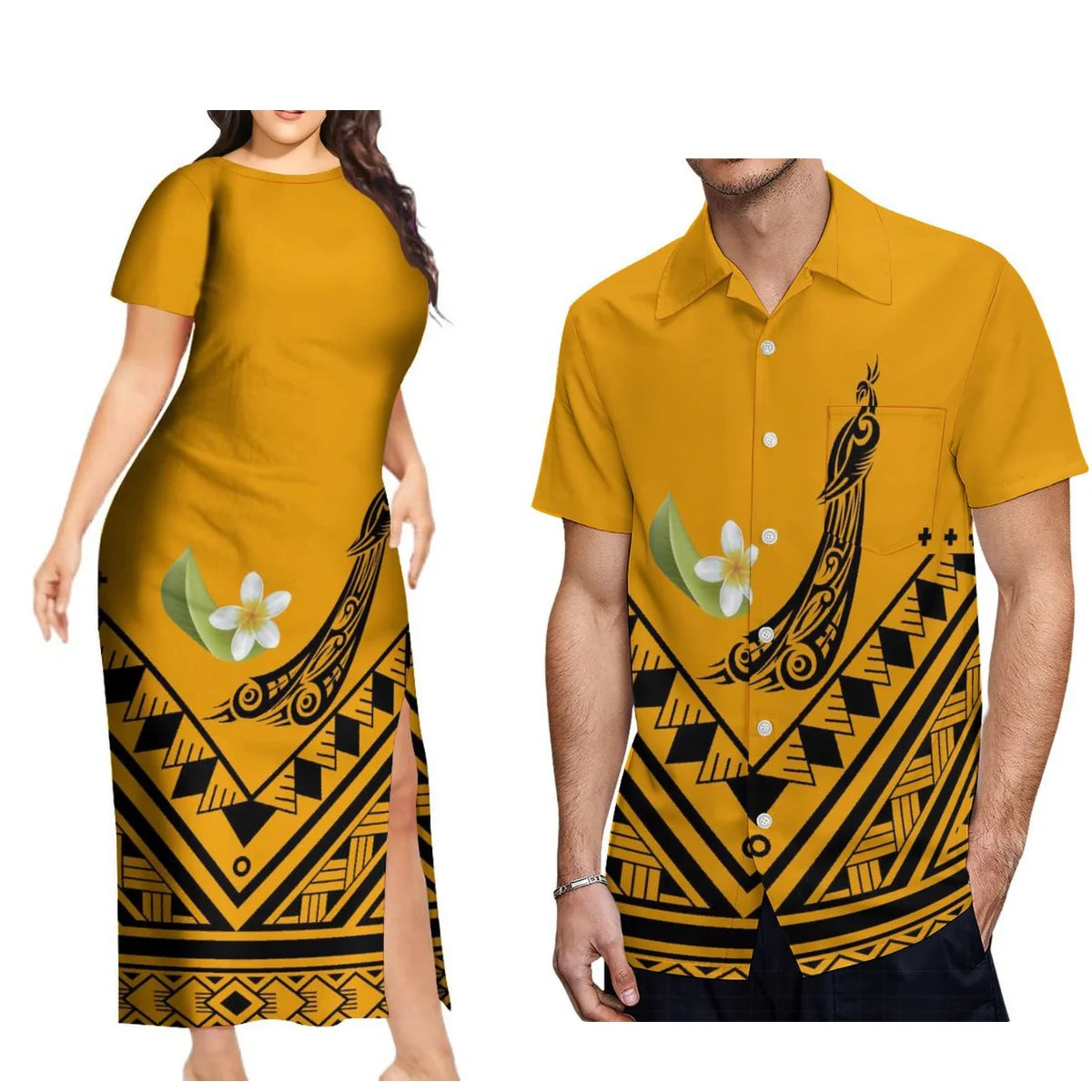 New Design Fashion Couple Set Aloha Shirt For Men And Slit Long Skirt For Women Quality Dress Polynesian Island