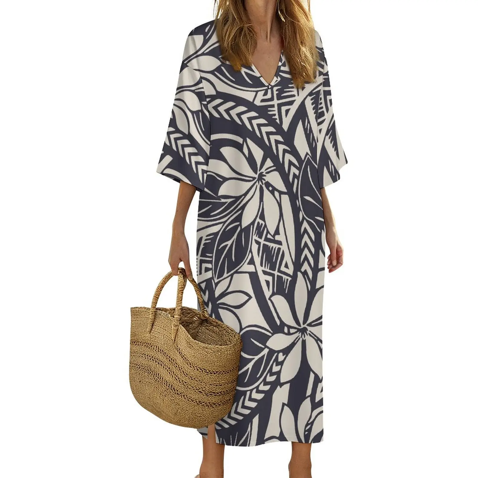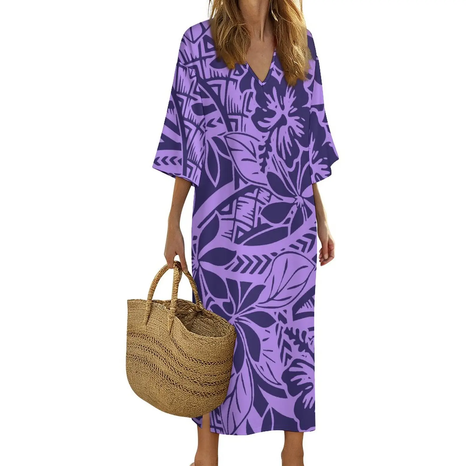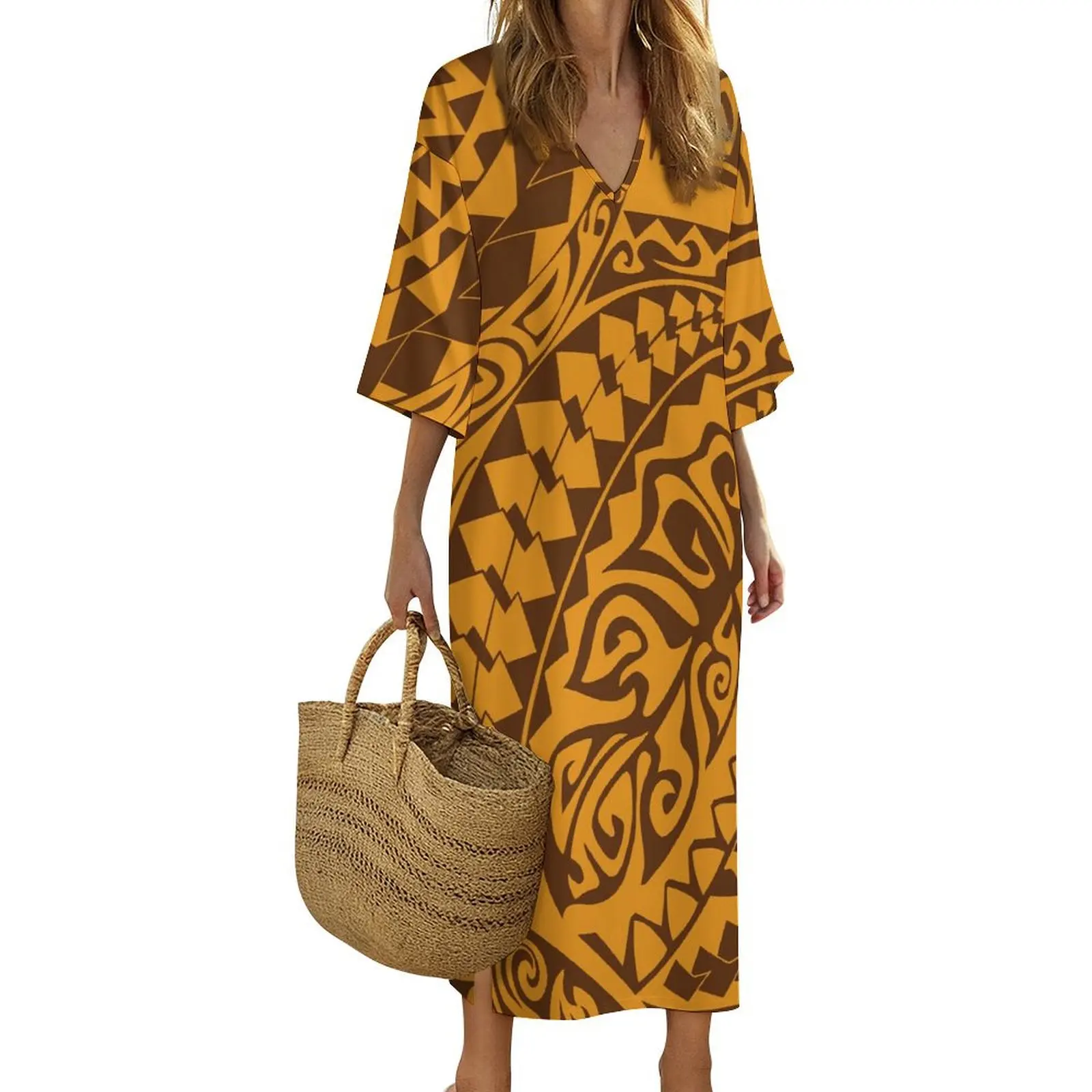 New Print on Demand Custom Polynesian Island Design V Neck Ladies Dress Matching Aloha Men Short Sleeve Shirts Couple Clothing