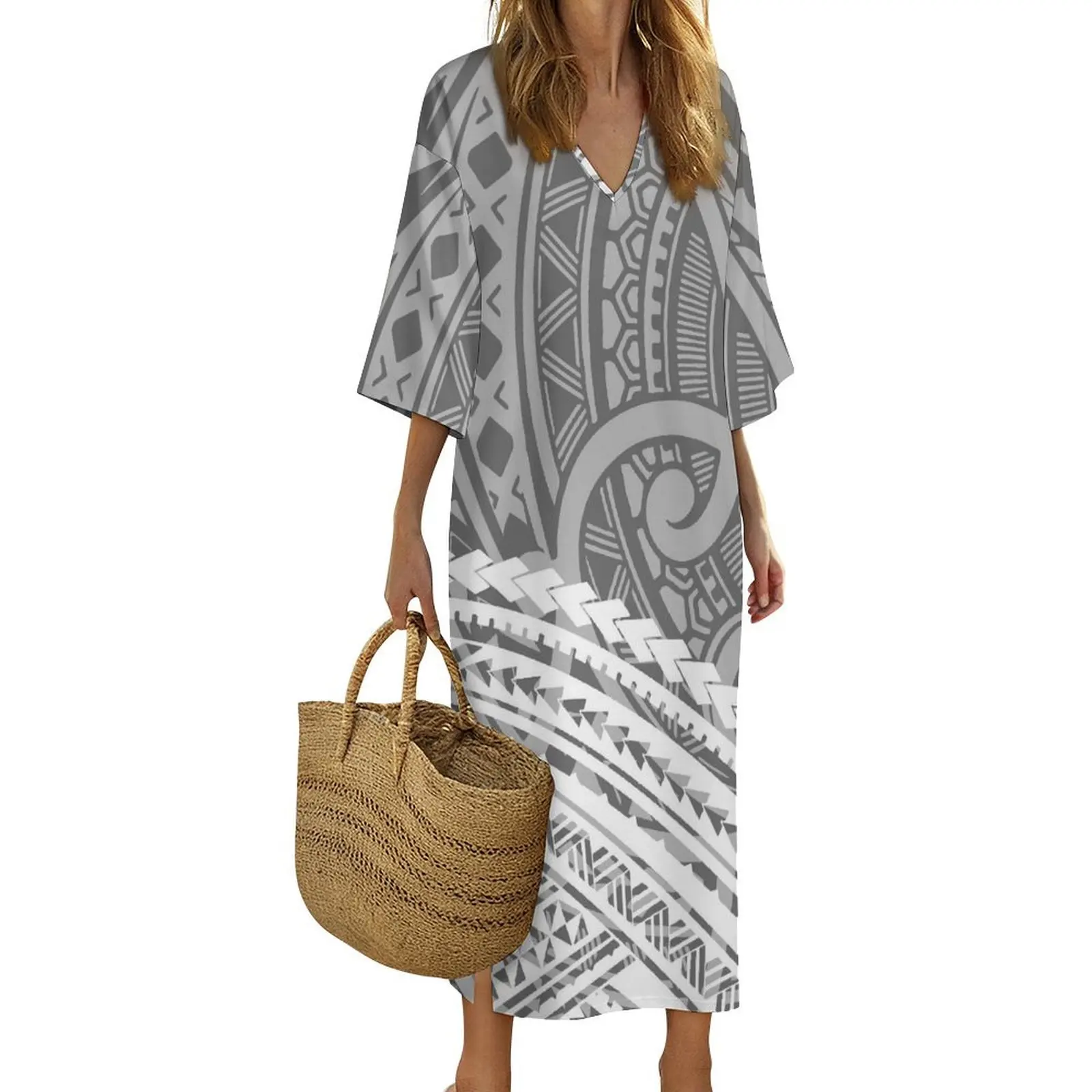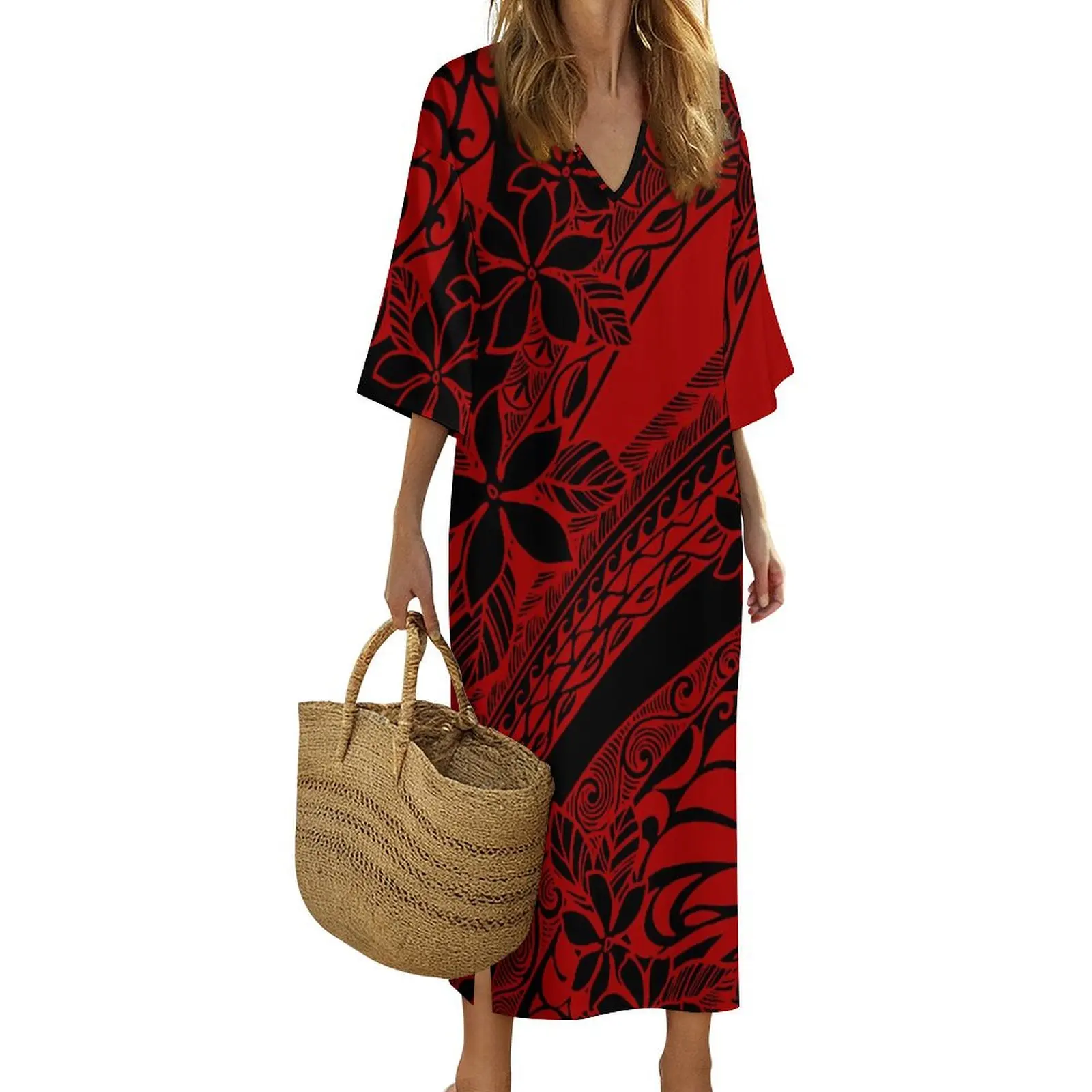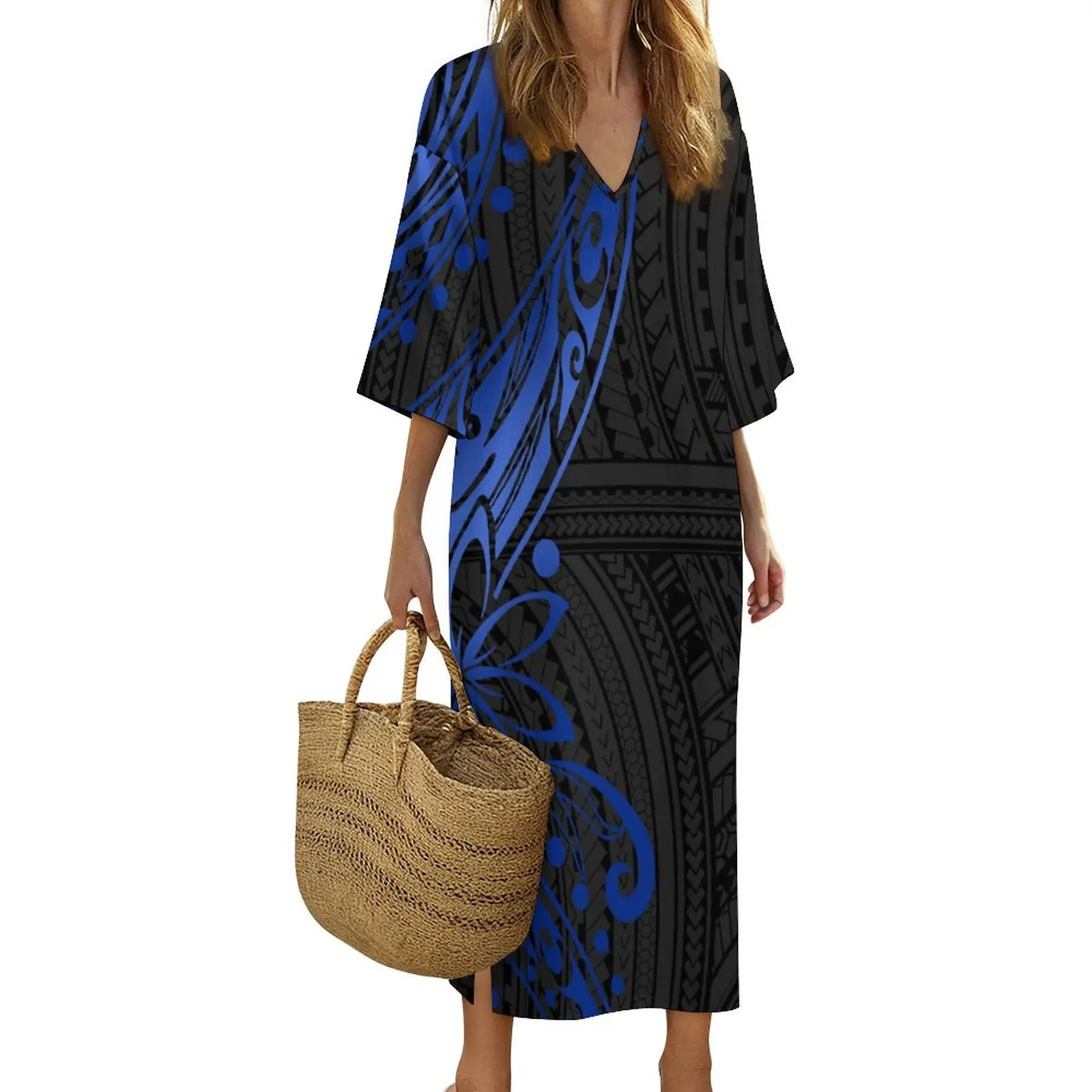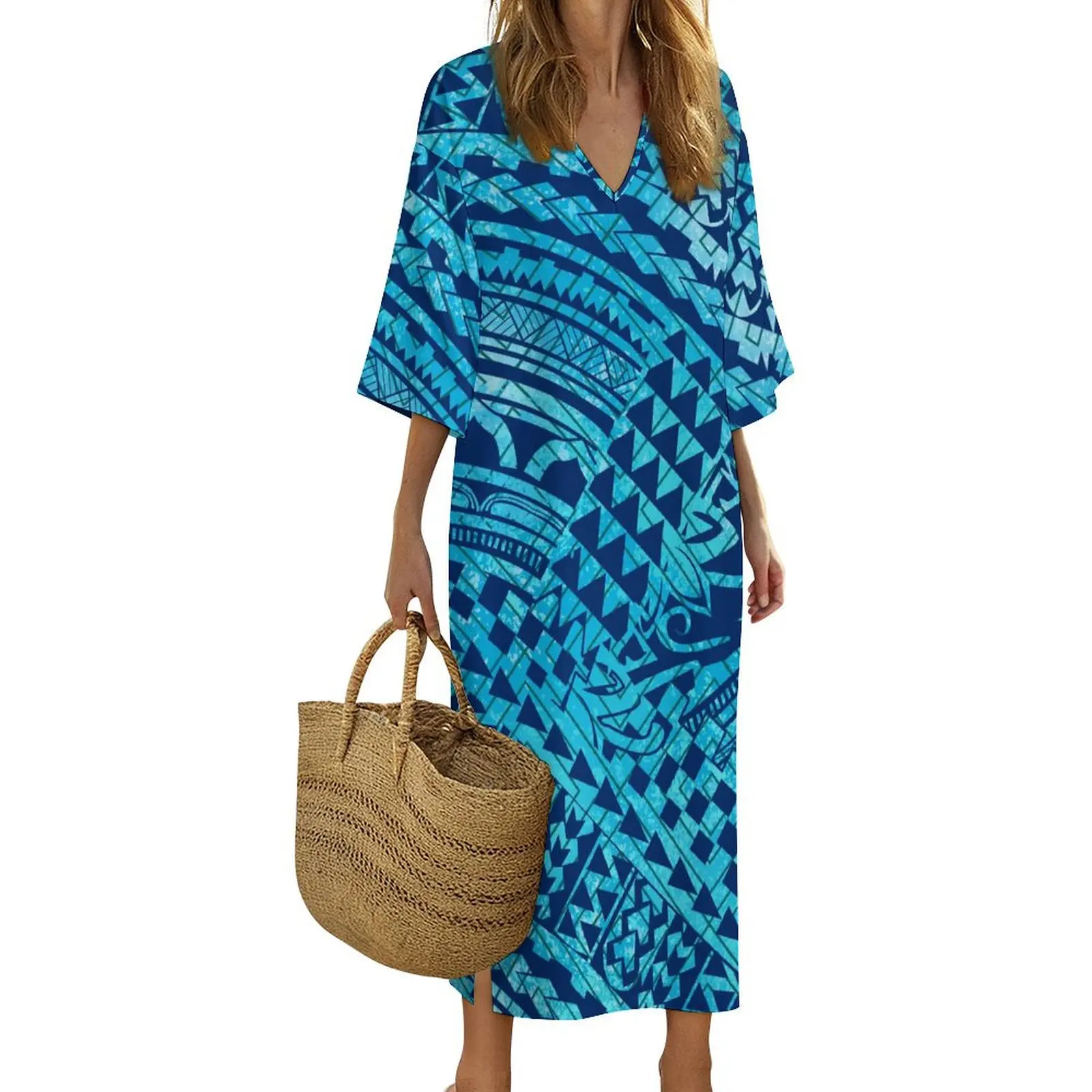 New Print on Demand Custom Polynesian Island Design V Neck Ladies Dress Matching Aloha Men Short Sleeve Shirts Couple Clothing