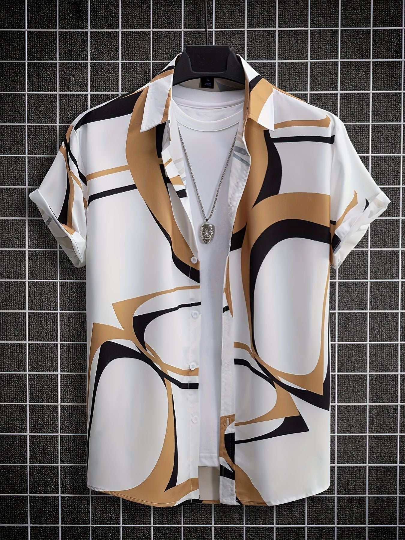 Beach Surfing European And American Foreign Trade 3D Digital Geometry Hawaii Printing Men Short Sleeve